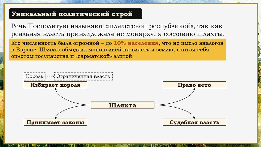 Уникальный политический стройРечь Посполитую называют «шляхетской республикой», так как