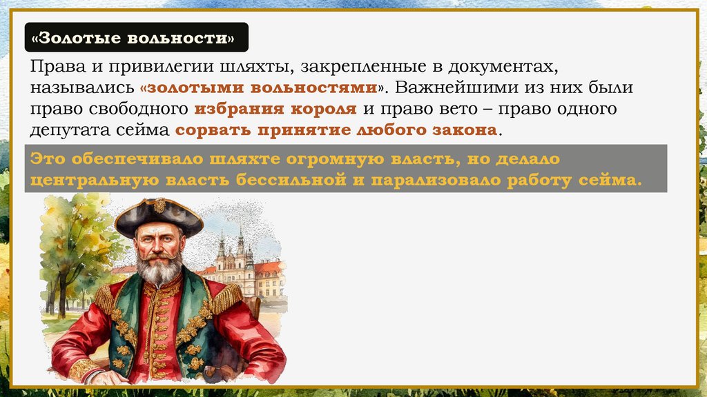 «Золотые вольности»Права и привилегии шляхты, закрепленные в документах,