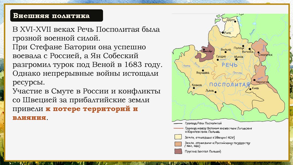 Внешняя политикаВ XVI-XVII веках Речь Посполитая была