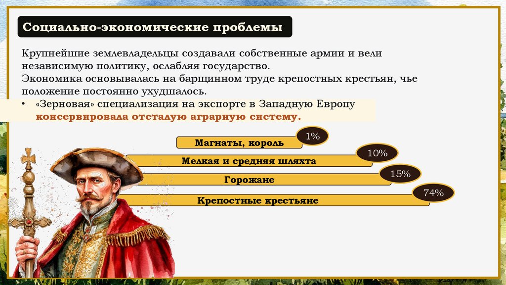 Социально-экономические проблемыКрупнейшие землевладельцы создавали собственные армии и вели