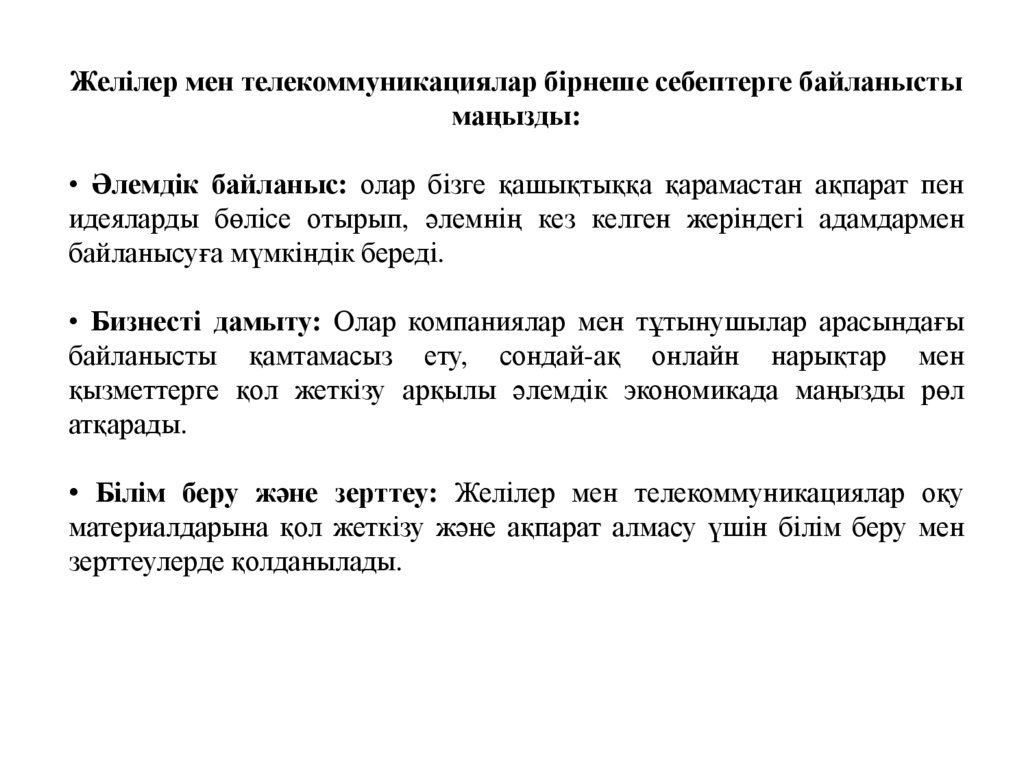 Желілер мен телекоммуникациялар бірнеше себептерге байланыстымаңызды: