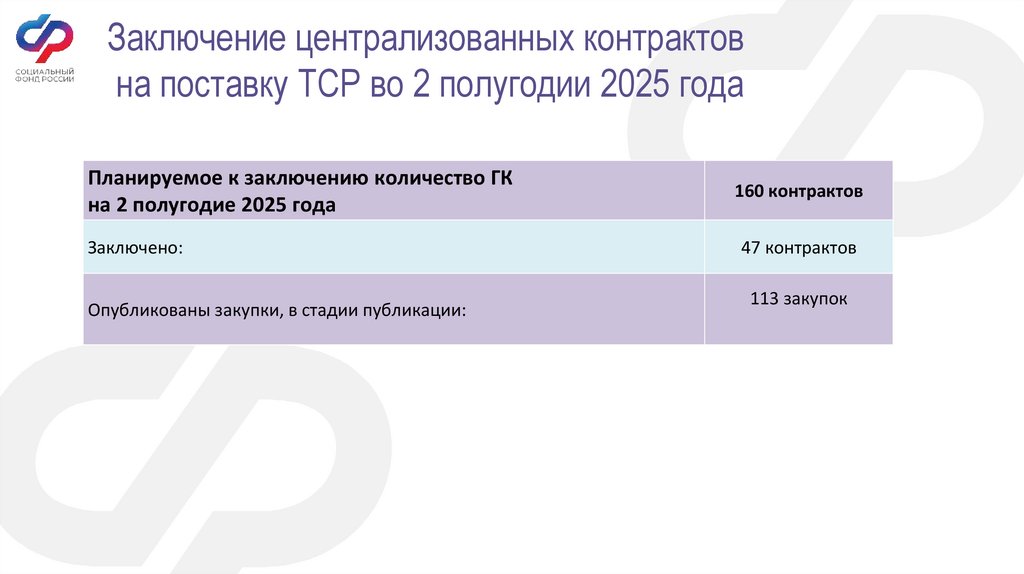 Заключение централизованных контрактовна поставку ТСР во 2 полугодии 2025 года