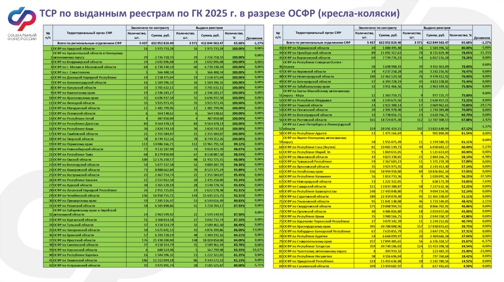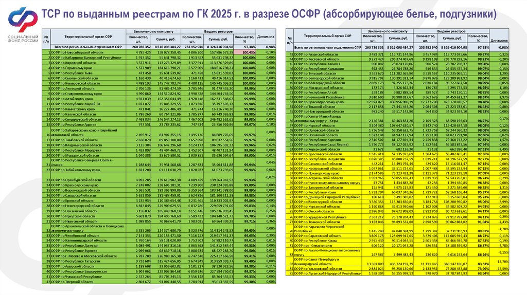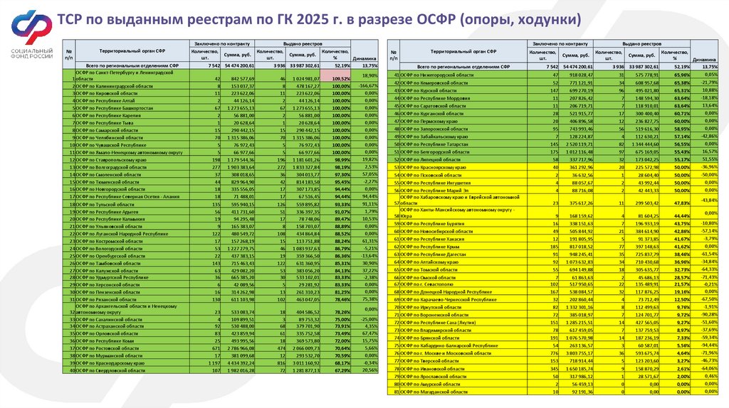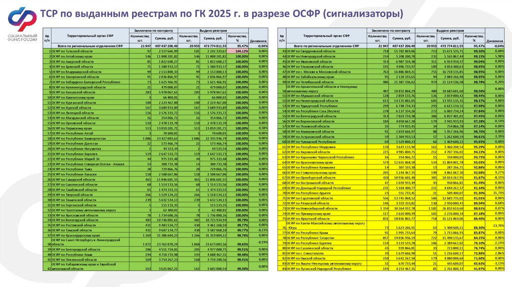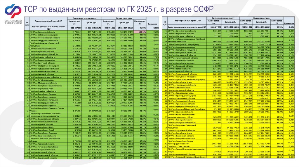 ТСР по выданным реестрам по ГК 2025 г. в разрезе ОСФР№