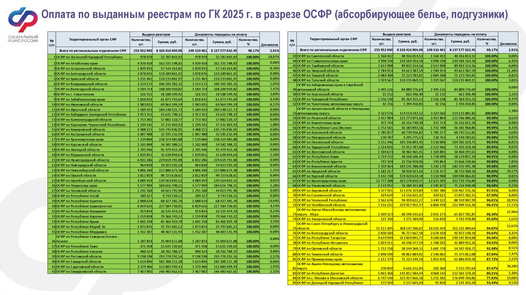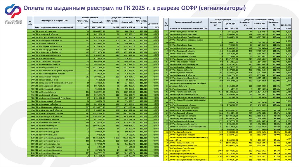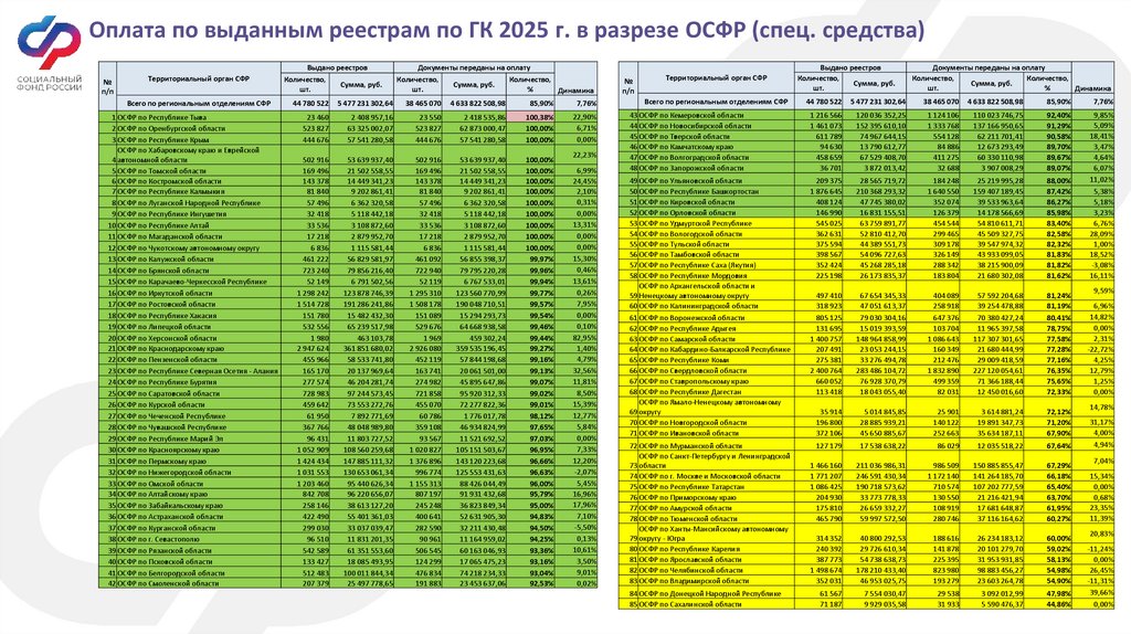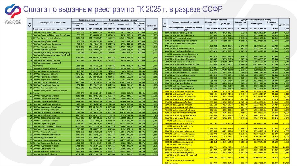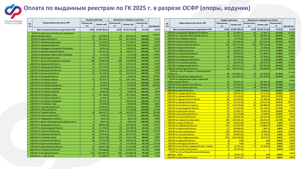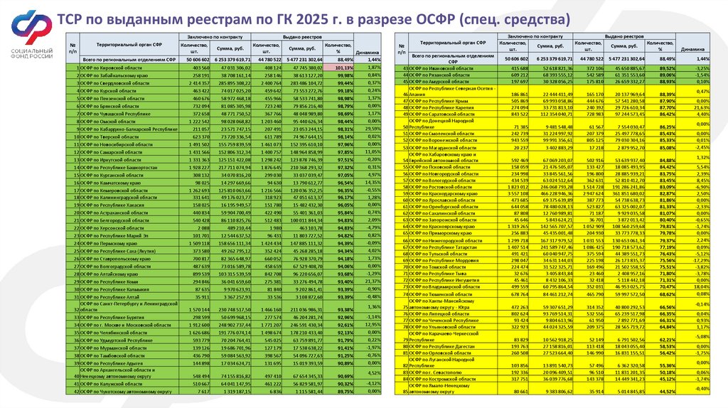 ТСР по выданным реестрам по ГК 2025 г. в разрезе ОСФР№