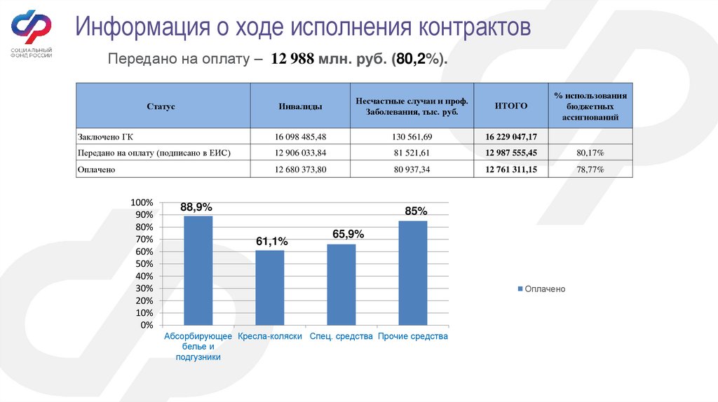 Информация о ходе исполнения контрактовПередано на оплату – 12 988 млн. руб. (80,2%).