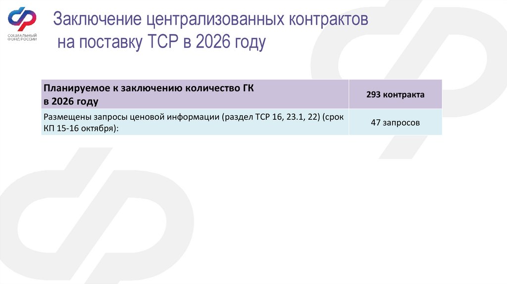 Заключение централизованных контрактовна поставку ТСР в 2026 году