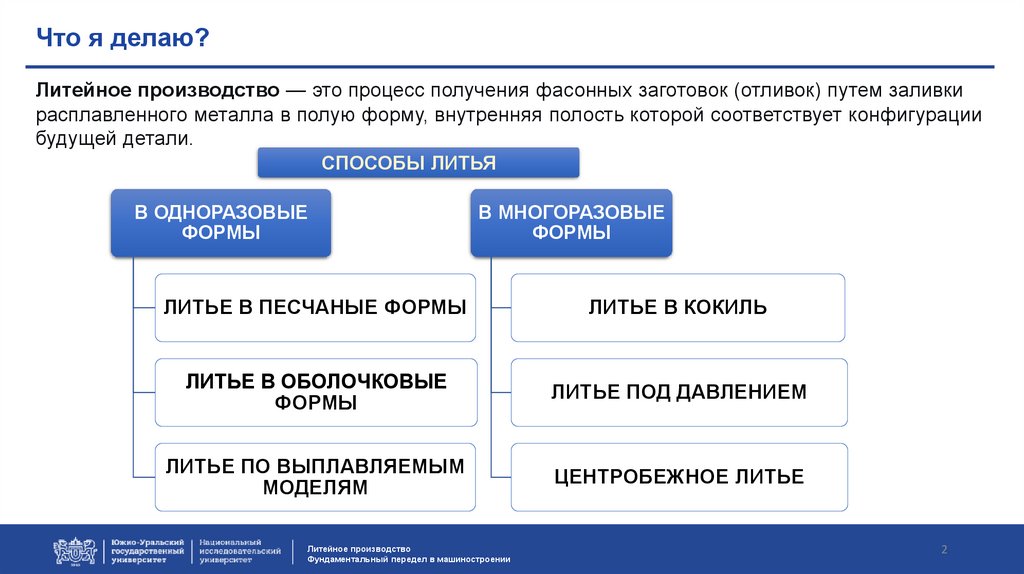 Что я делаю?Литейное производство — это процесс получения фасонных заготовок (отливок) путем заливки