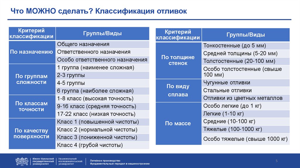 Что МОЖНО сделать? Классификация отливокКритерий