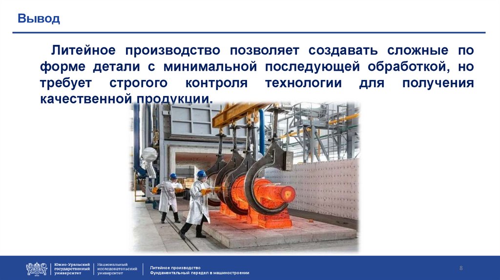 ВыводЛитейное производство позволяет создавать сложные по