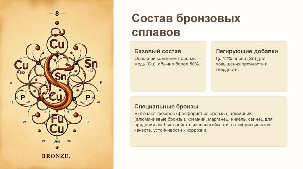 всего с оловом, что отличает ее от латуни, где основным легирующим