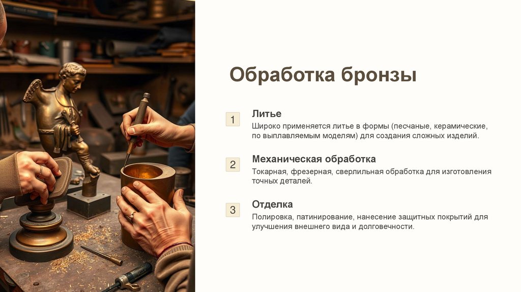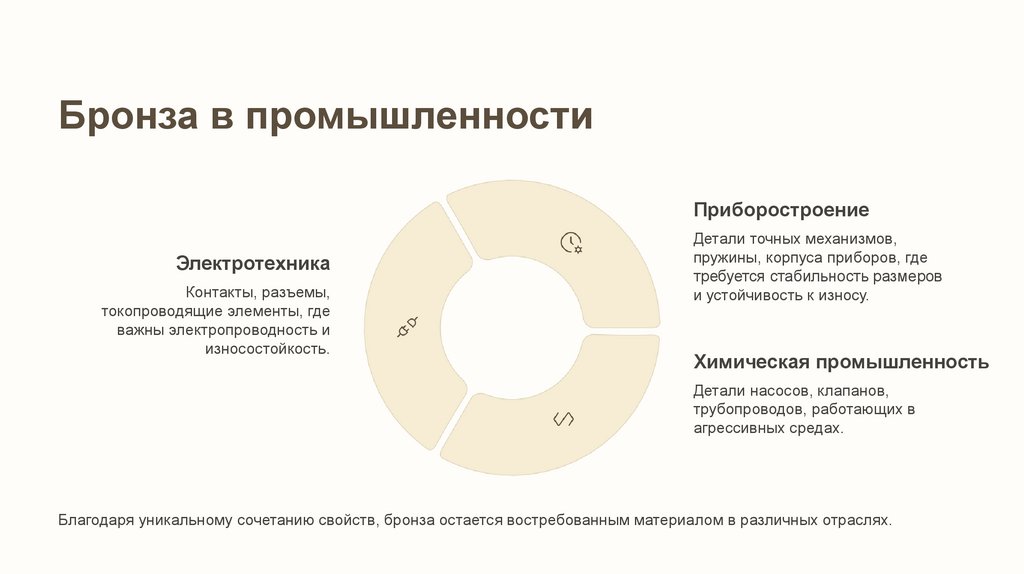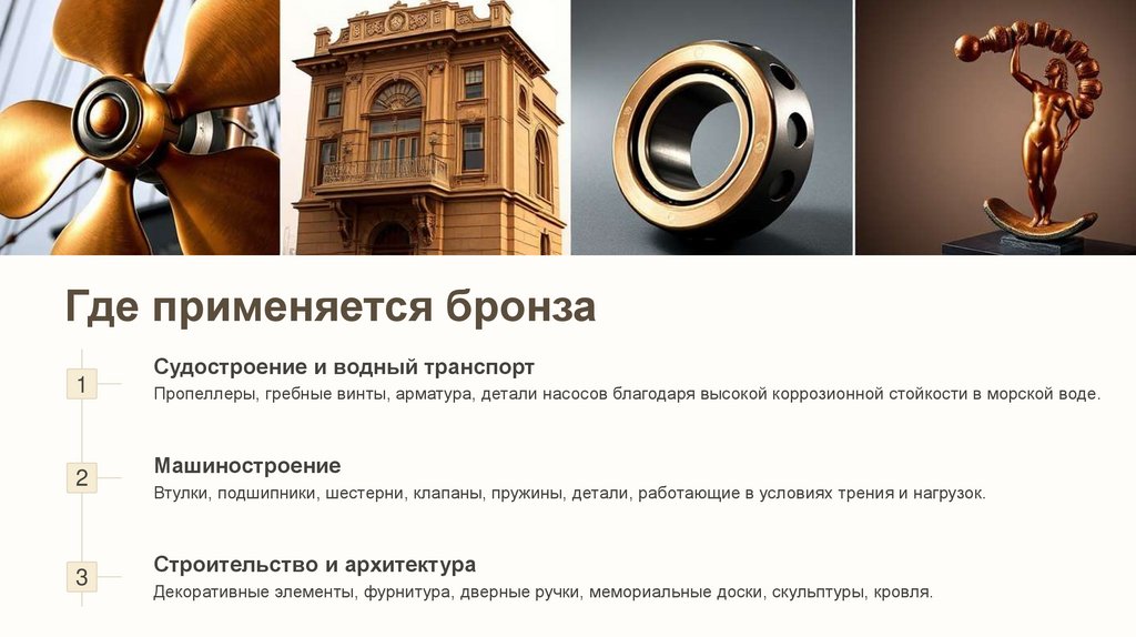 Благодаря уникальному сочетанию свойств, бронза остается востребованным материалом в различных отраслях.