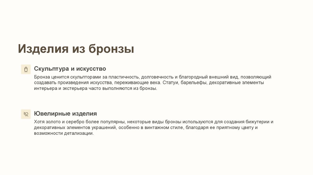 Бронза ценится скульпторами за пластичность, долговечность и благородный внешний вид, позволяющий