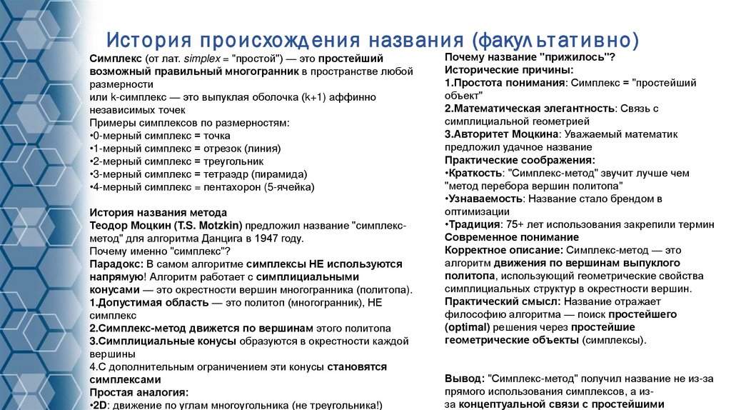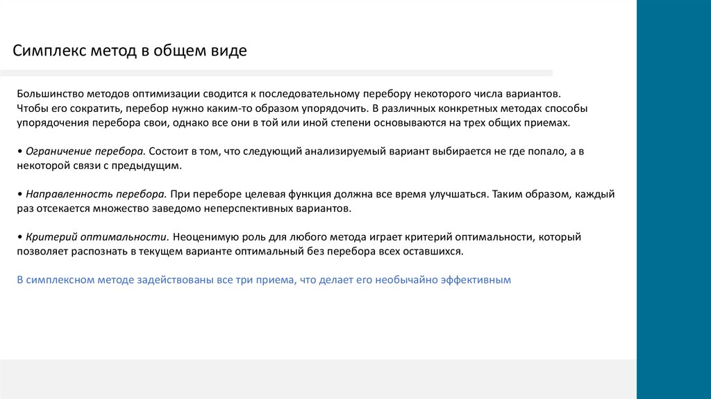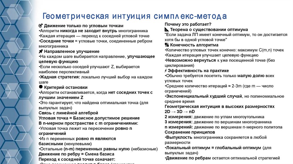 Геомет рическая инт уиц ия симпл екс -мет од аОсновная идея: "Умная