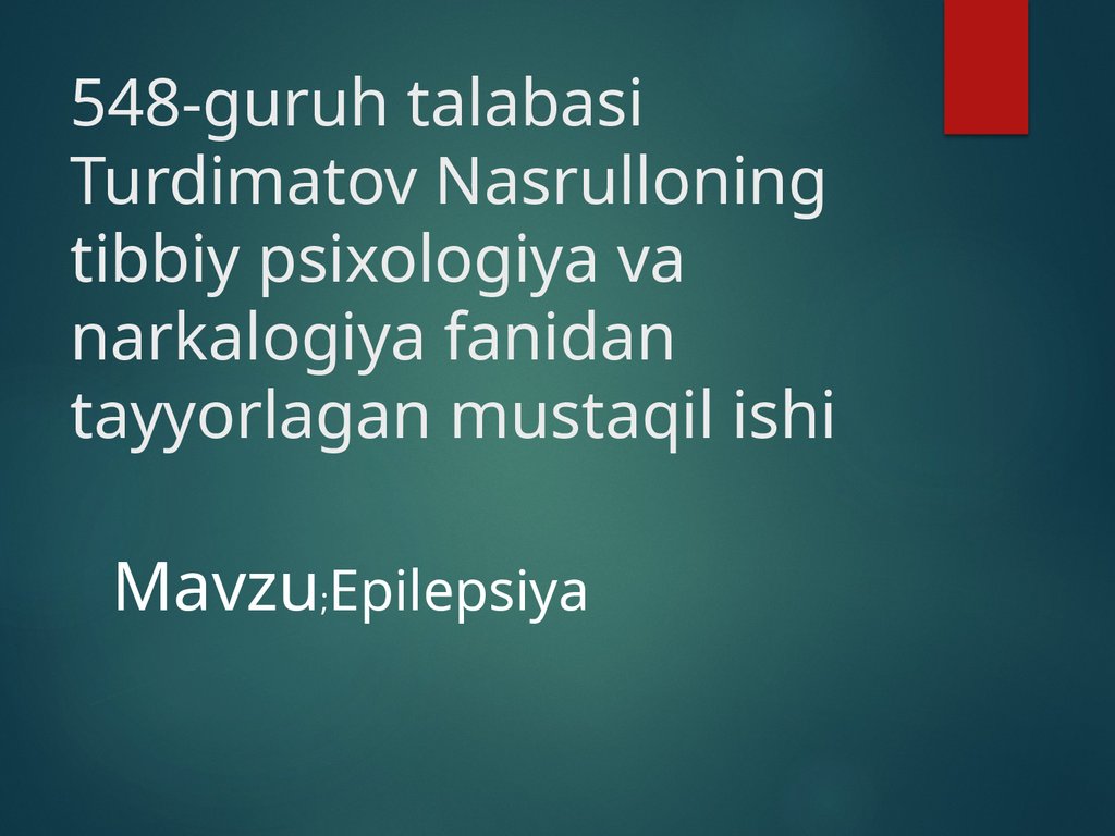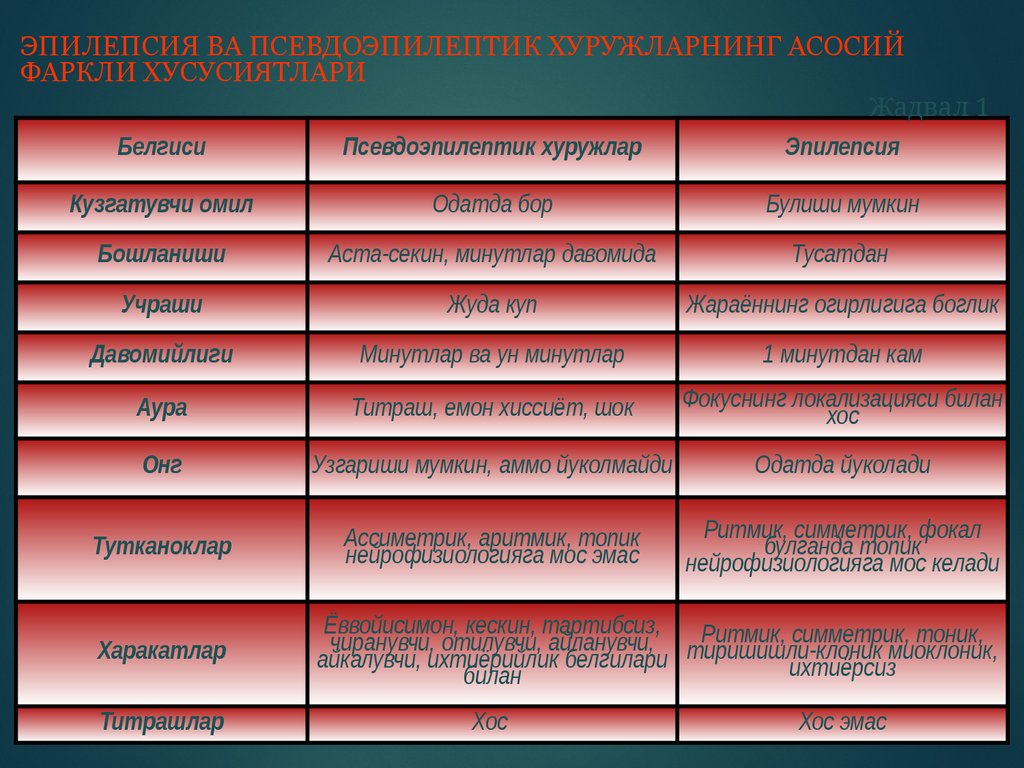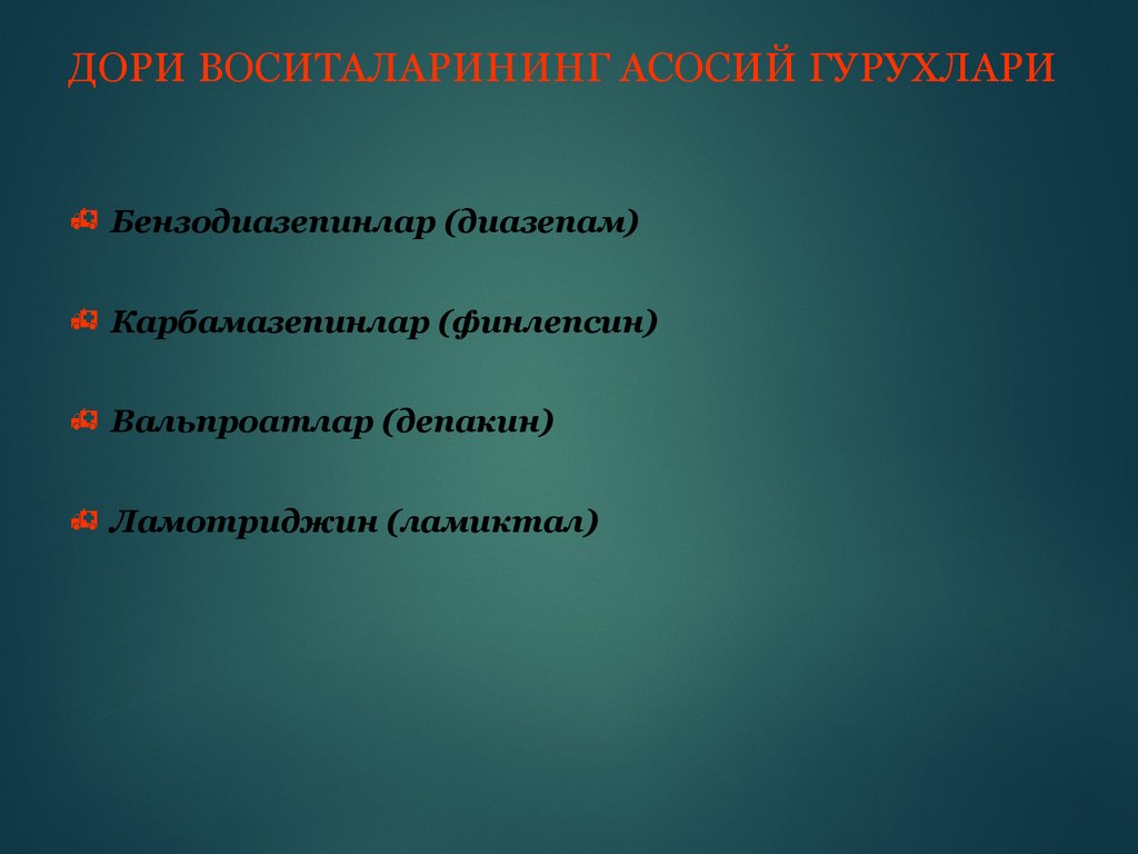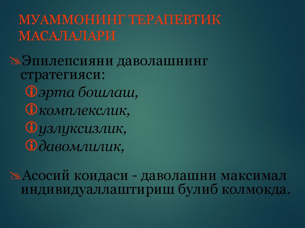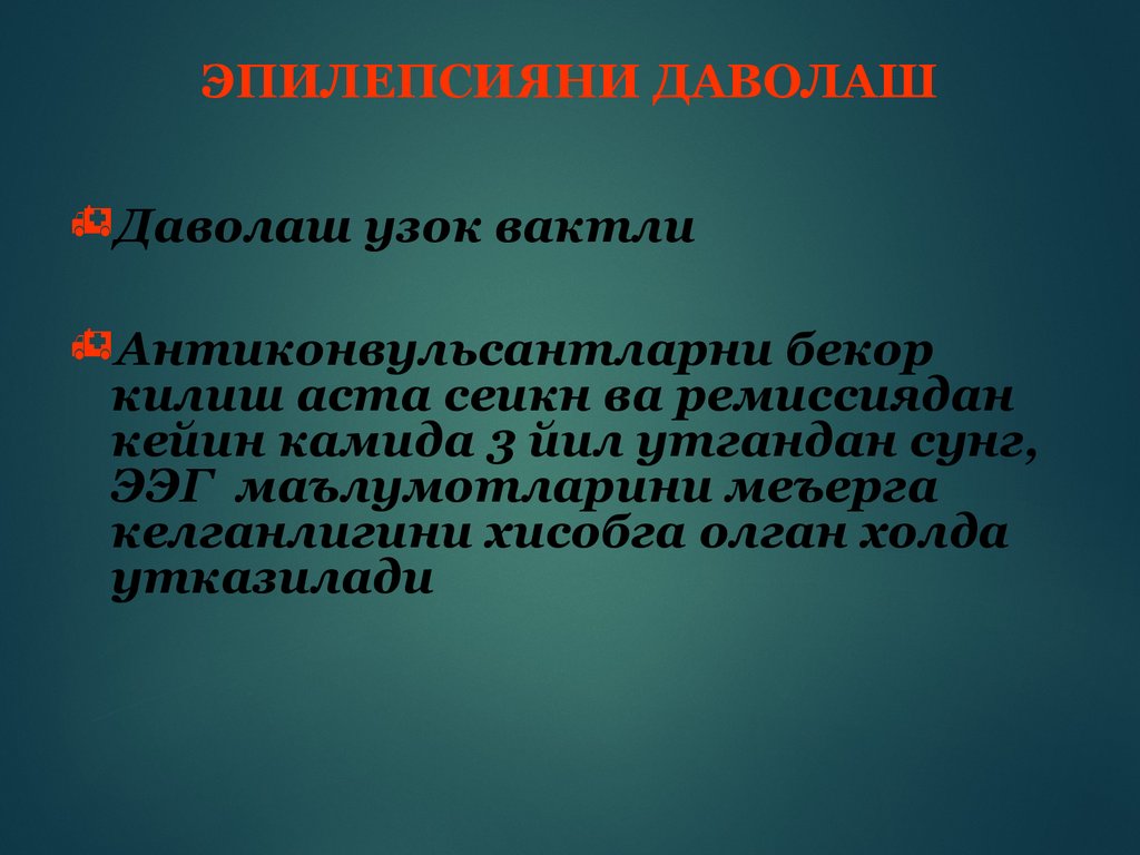 ЭПИЛЕПСИЯНИ ДАВОЛАШДаволаш узок вактли