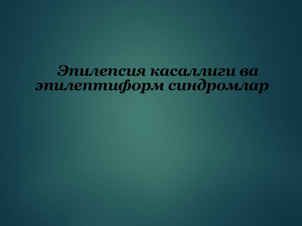 Эпилепсия касаллиги ваэпилептиформ синдромлар