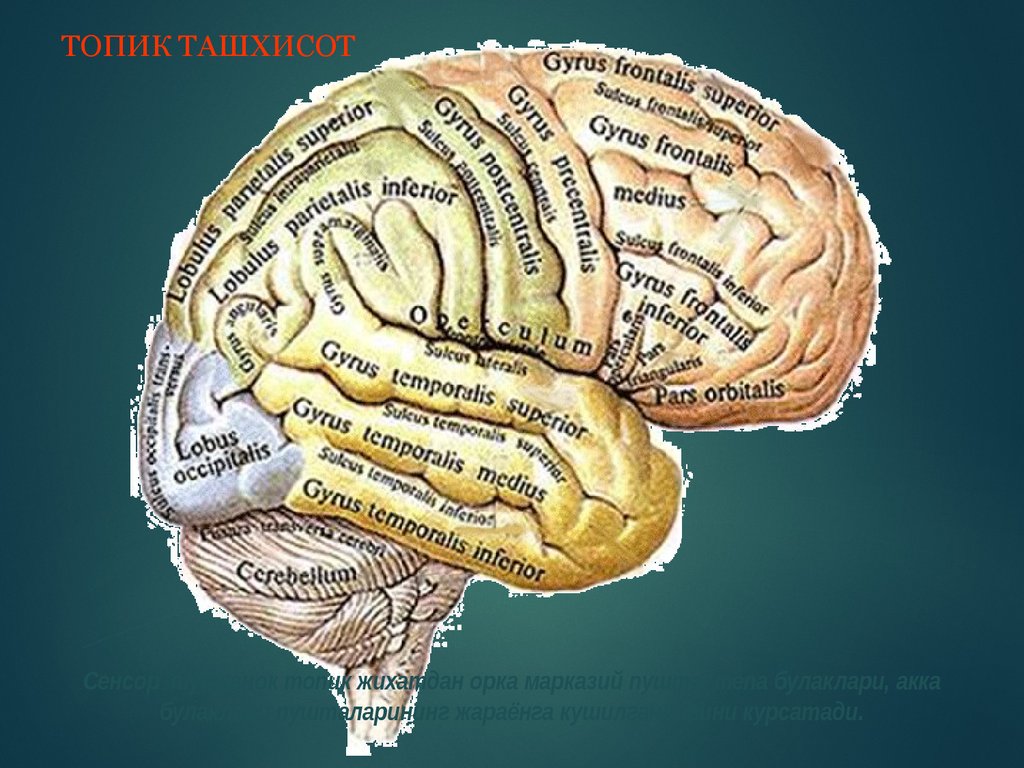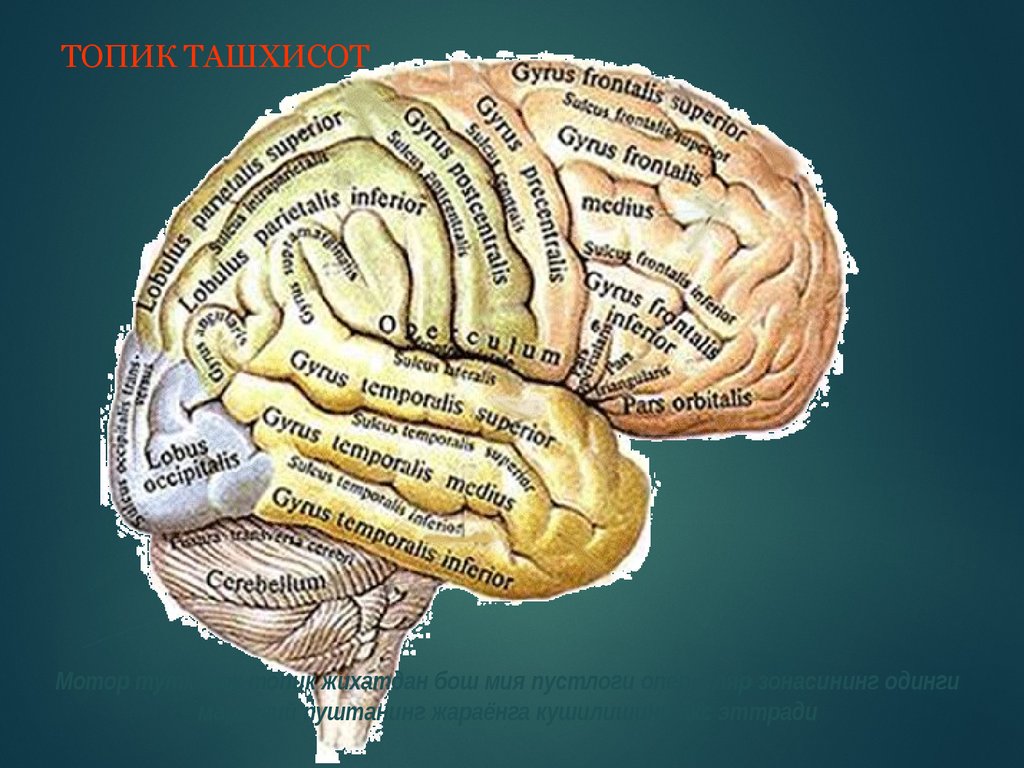 ТОПИК ТАШХИСОТМотор тутканок топик жихатдан бош мия пустлоги оперкуляр зонасининг одинги