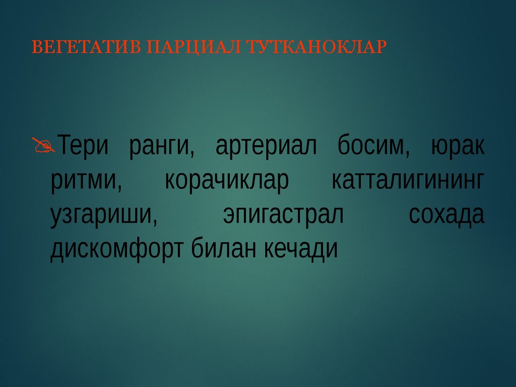 ВЕГЕТАТИВ ПАРЦИАЛ ТУТКАНОКЛАРТери ранги, артериал босим, юрак