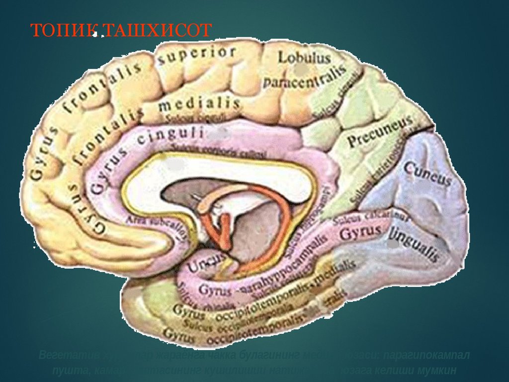ТОПИК ТАШХИСОТВегетатив хуружлар жараёнга чакка булагининг медиал юзаси: парагипокампал