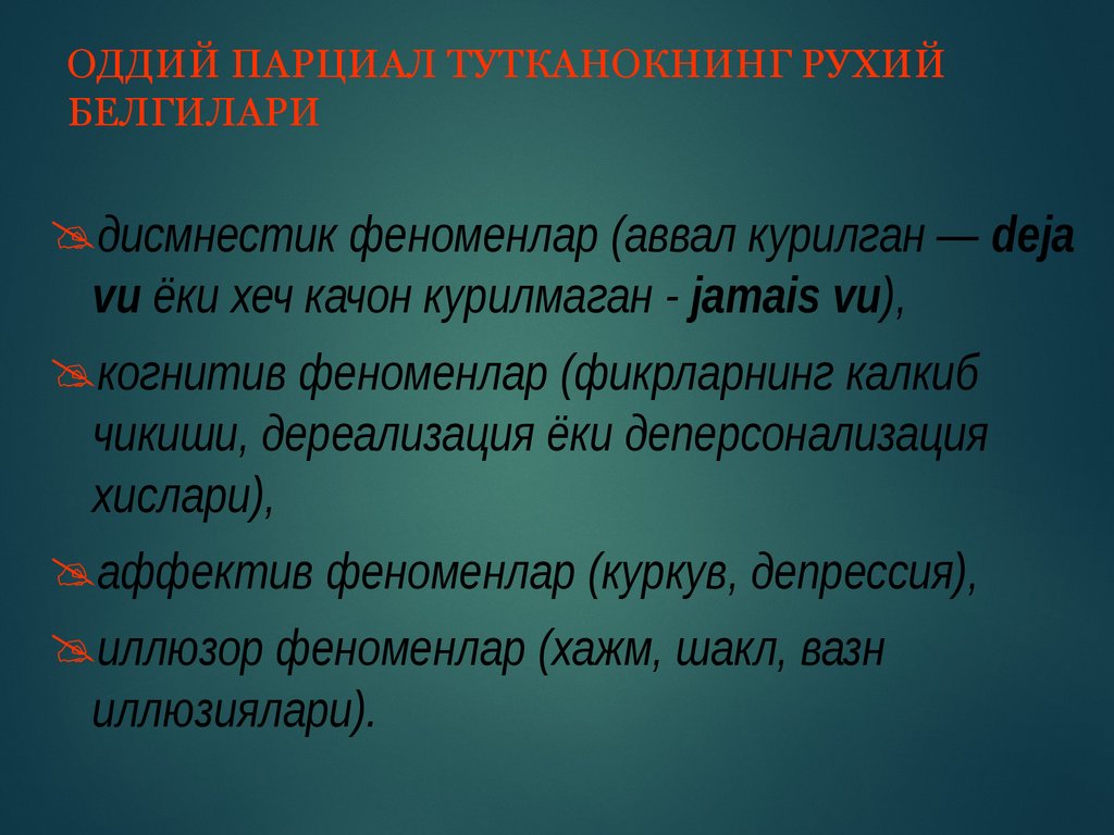 ОДДИЙ ПАРЦИАЛ ТУТКАНОКНИНГ РУХИЙБЕЛГИЛАРИ