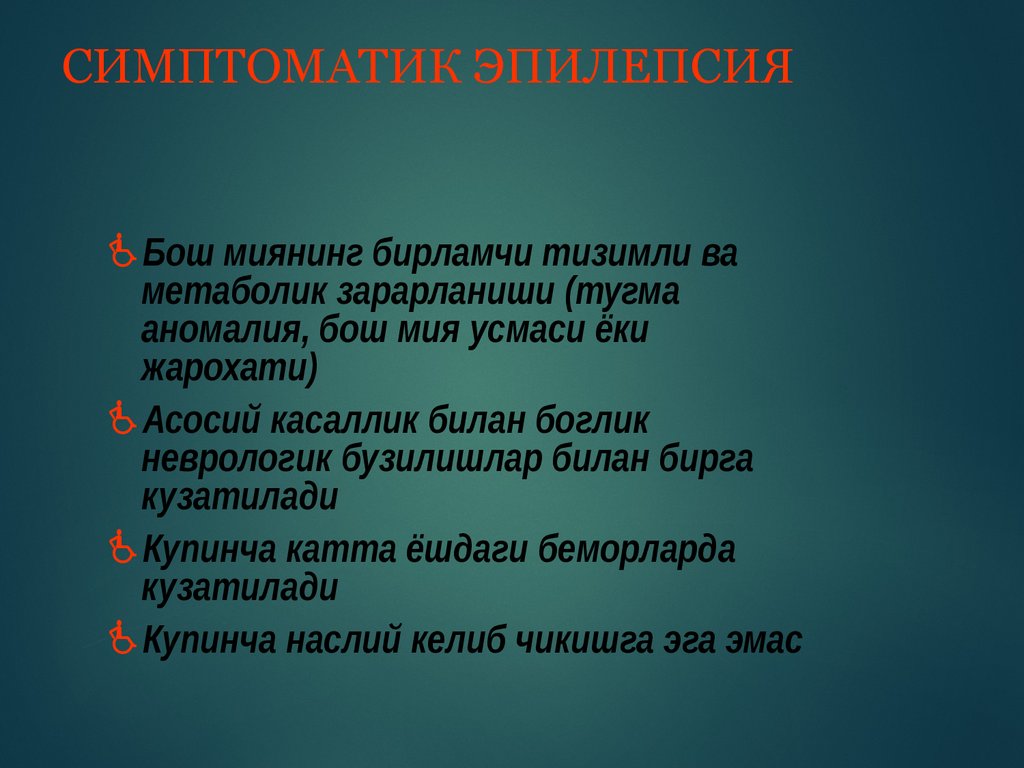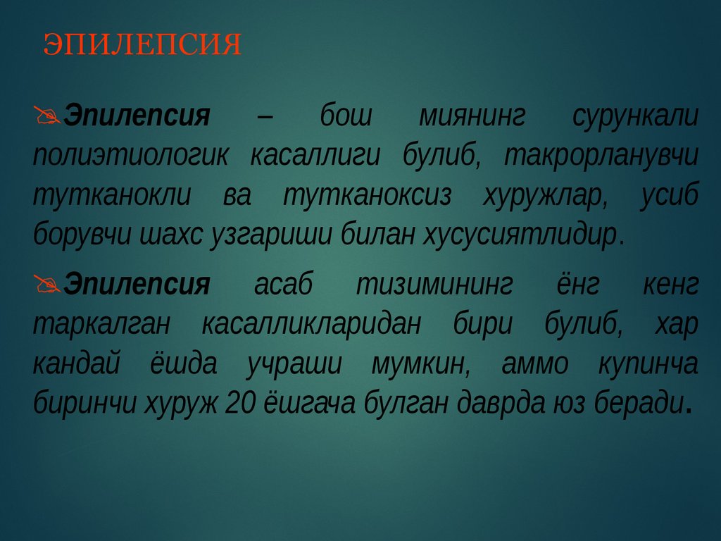 ЭПИЛЕПСИЯЭпилепсия – бош миянинг сурункали
