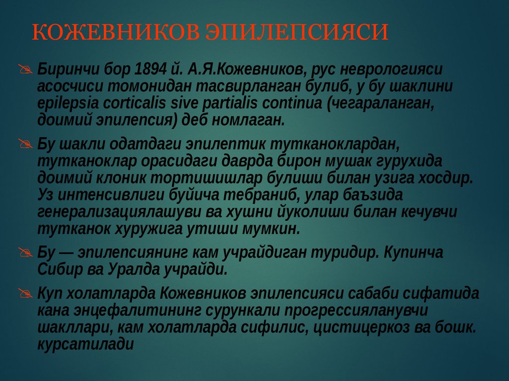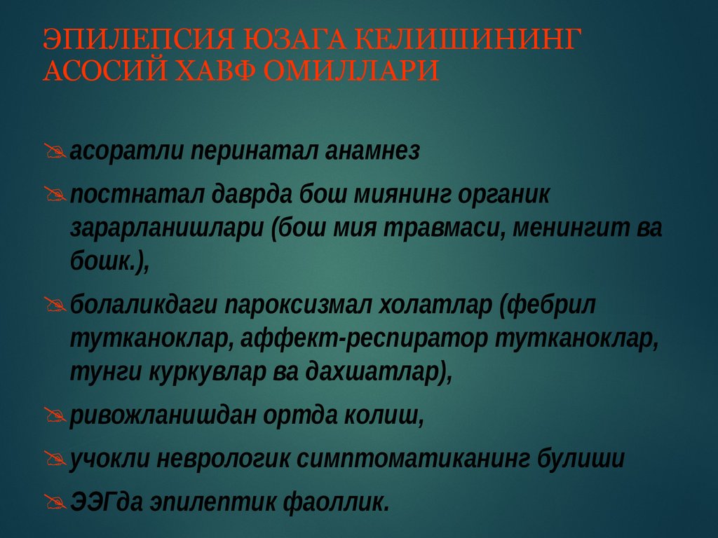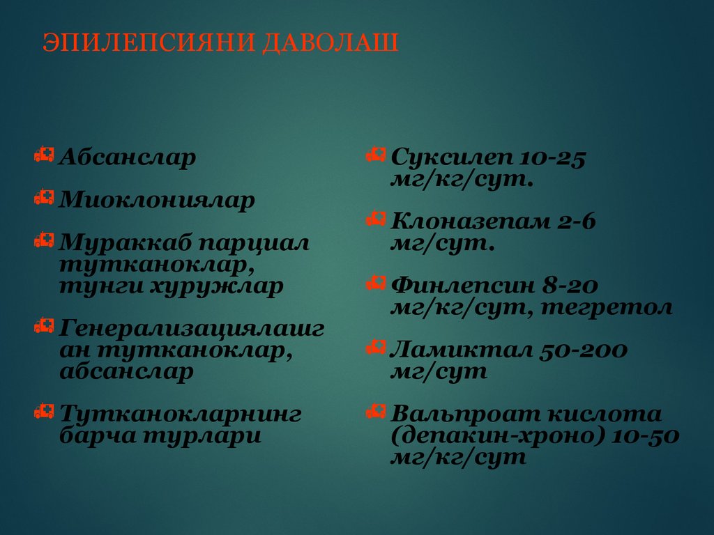 ЭПИЛЕПСИЯНИ ДАВОЛАШАбсанслар