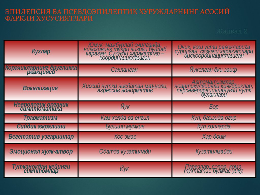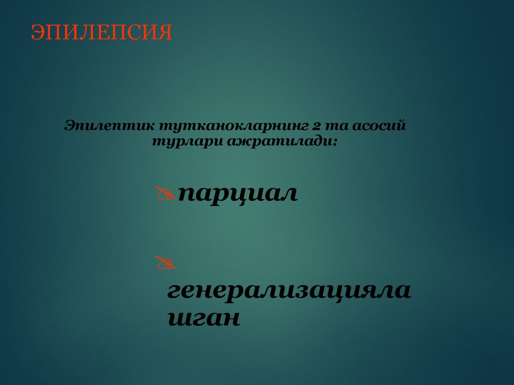 ЭПИЛЕПСИЯЭпилептик тутканокларнинг 2 та асосий