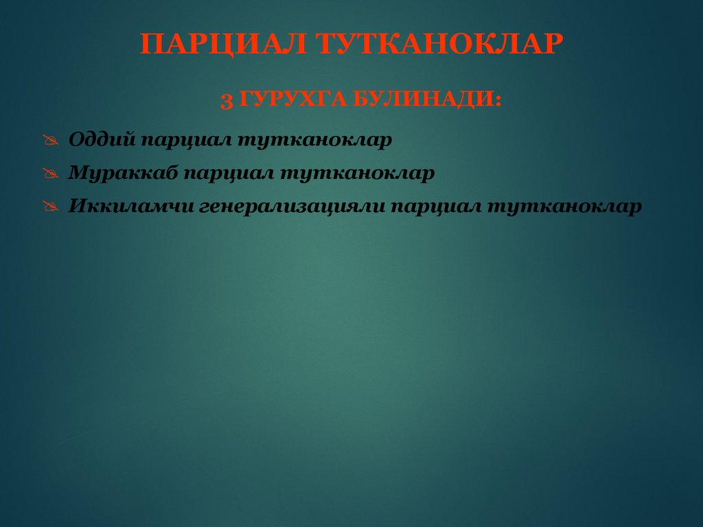 ПАРЦИАЛ ТУТКАНОКЛАР3 ГУРУХГА БУЛИНАДИ: