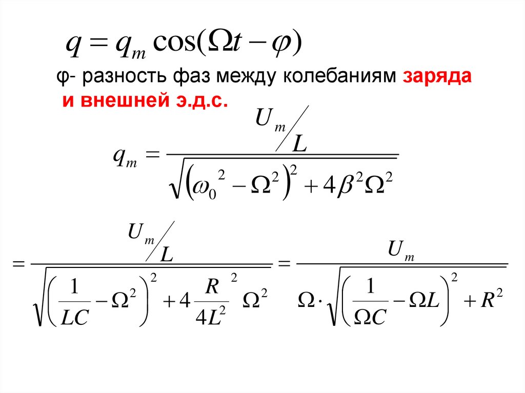 q qm cos( t )φ- разность фаз между колебаниям заряда