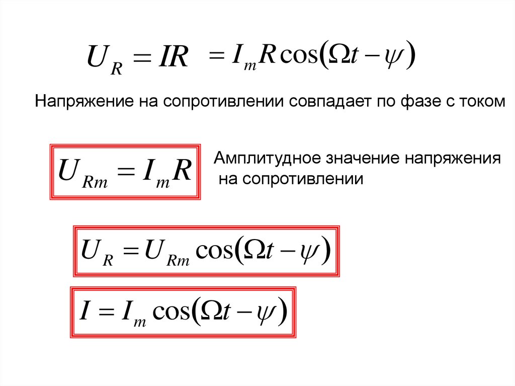U R IR I m R cos tНапряжение на сопротивлении совпадает по фазе с током