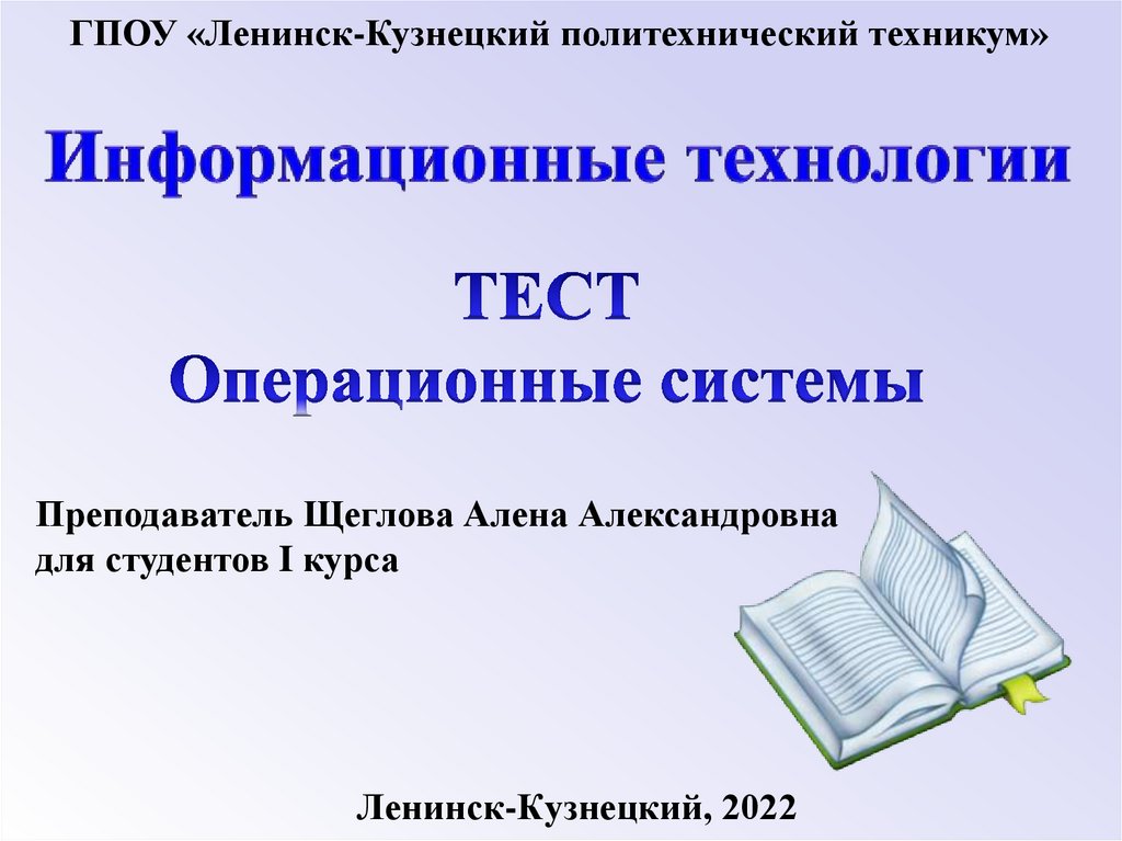 ГПОУ «Ленинск-Кузнецкий политехнический техникум»Преподаватель Щеглова Алена Александровна