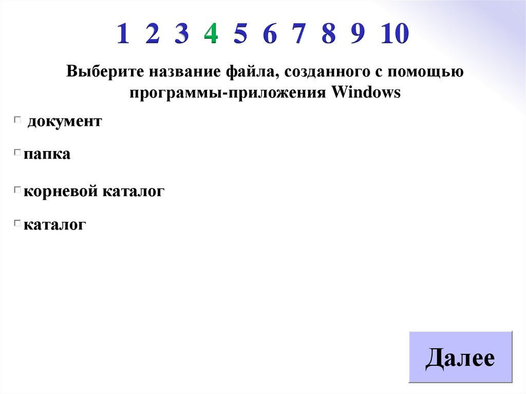 1 2 3 4 5 6 7 8 9 10Выберите название файла, созданного с помощью