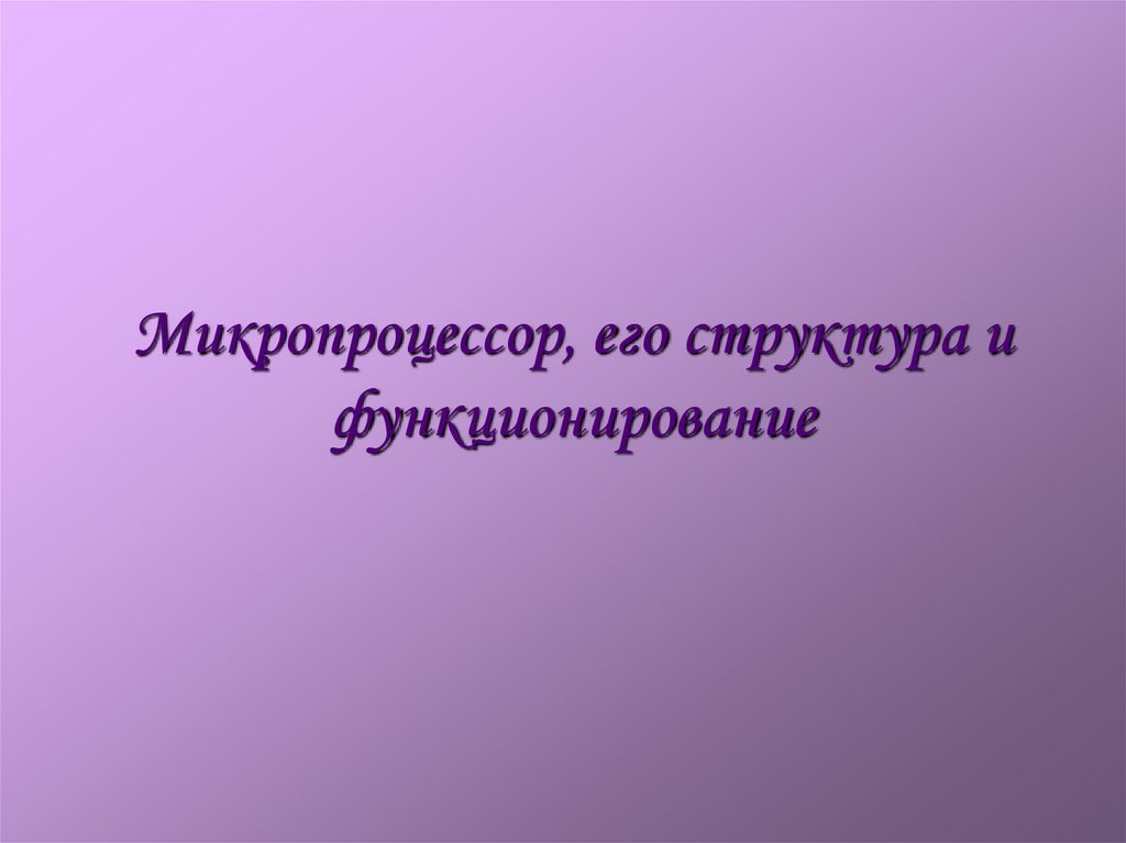 Микропроцессор - это центральный блокперсонального компьютера, предназначенный для