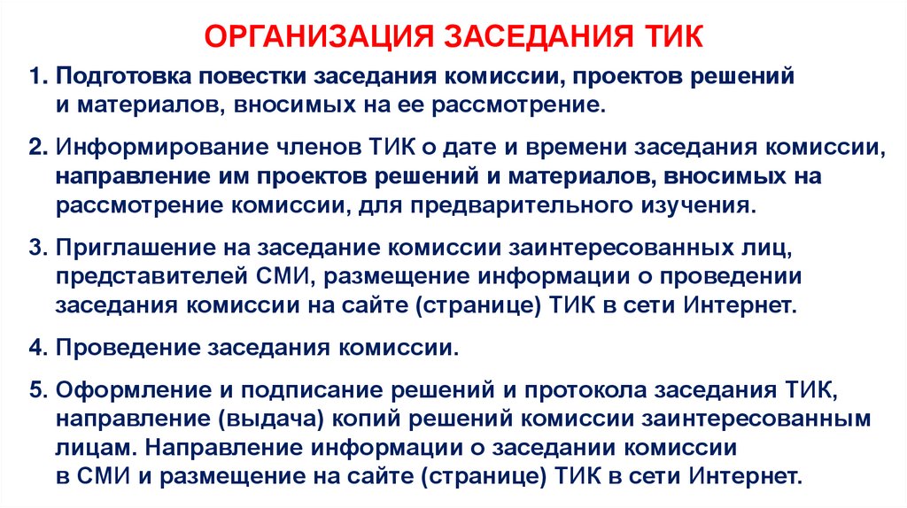 ОРГАНИЗАЦИЯ ЗАСЕДАНИЯ ТИК1. Подготовка повестки заседания комиссии, проектов решений