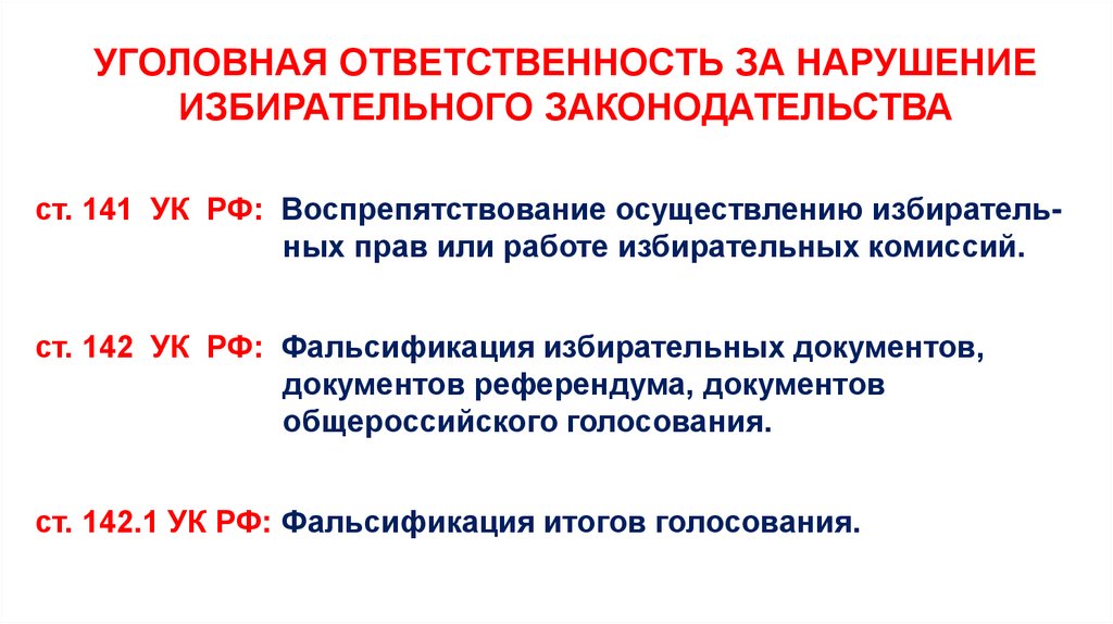 УГОЛОВНАЯ ОТВЕТСТВЕННОСТЬ ЗА НАРУШЕНИЕИЗБИРАТЕЛЬНОГО ЗАКОНОДАТЕЛЬСТВА