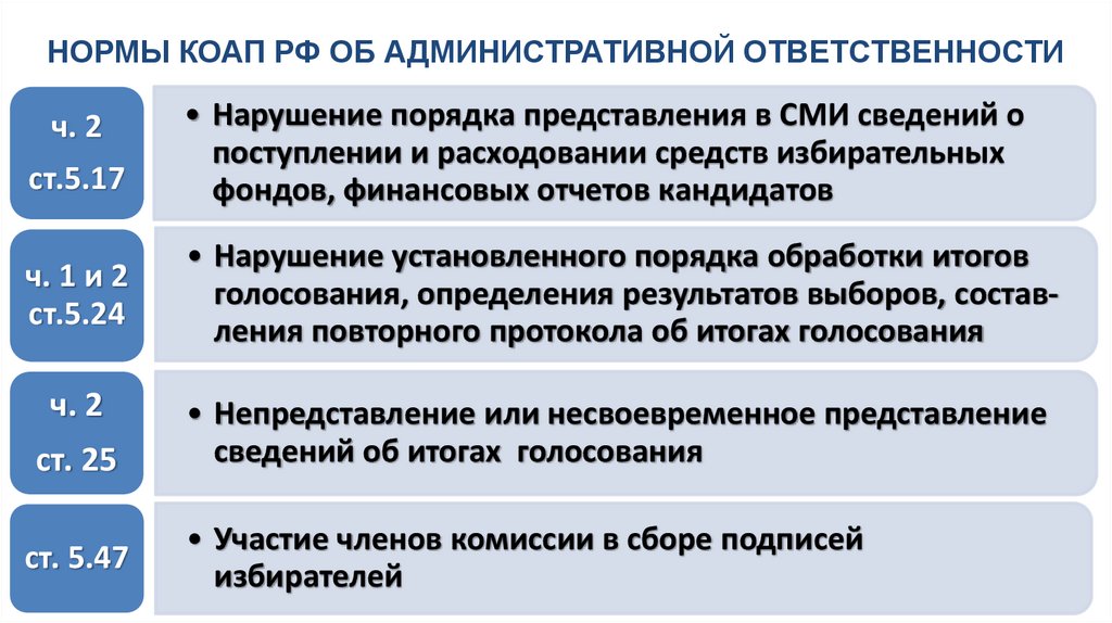 НОРМЫ КОАП РФ ОБ АДМИНИСТРАТИВНОЙ ОТВЕТСТВЕННОСТИст.