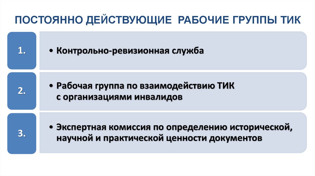 ПОСТОЯННО ДЕЙСТВУЮЩИЕ РАБОЧИЕ ГРУППЫ ТИК1.