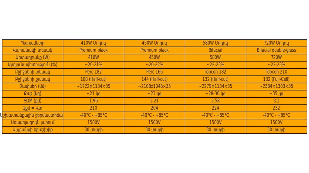 Բարձր արդյունավետություն (18-22%)Երկարատև ծառայության ժամկետ (25+