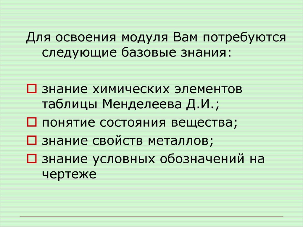 Для освоения модуля Вам потребуютсяследующие базовые знания: