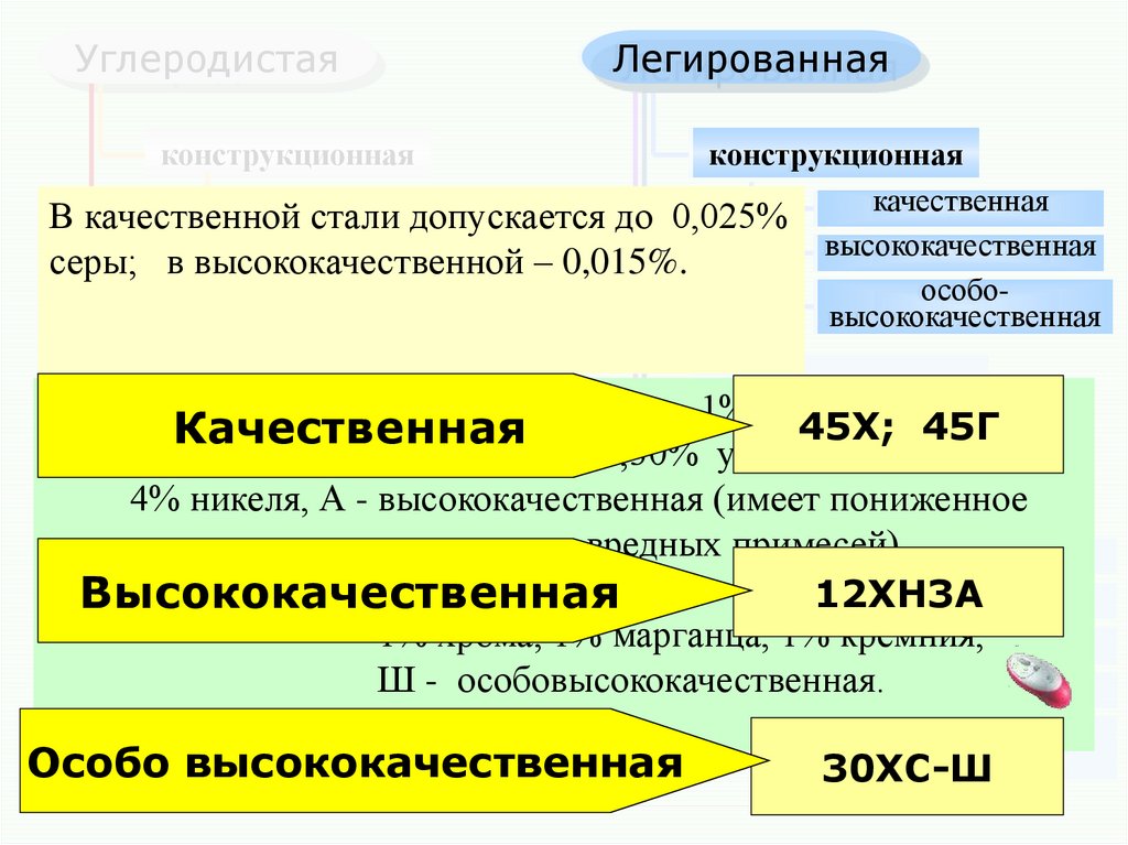 Качественная – 12ХН3 - 0,12 углерода, 1%быстрорежущая
