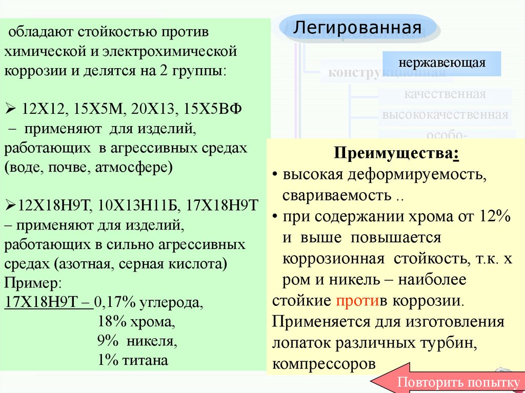 Лопатки турбин в ракетной и реактивной технике15. Применение коррозионно-стойкой стали