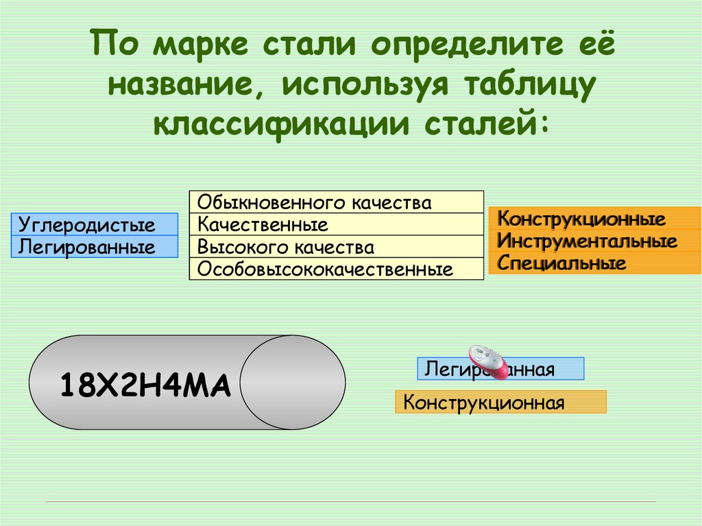 69. По марке стали определите её название, используя таблицу классификации сталей: