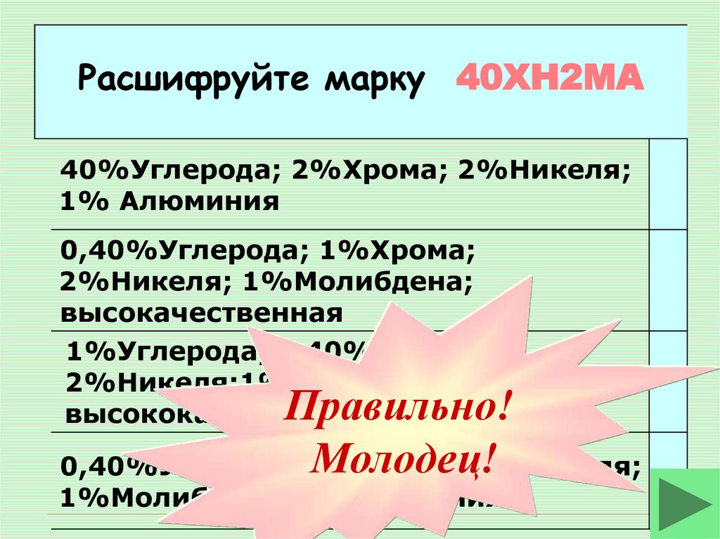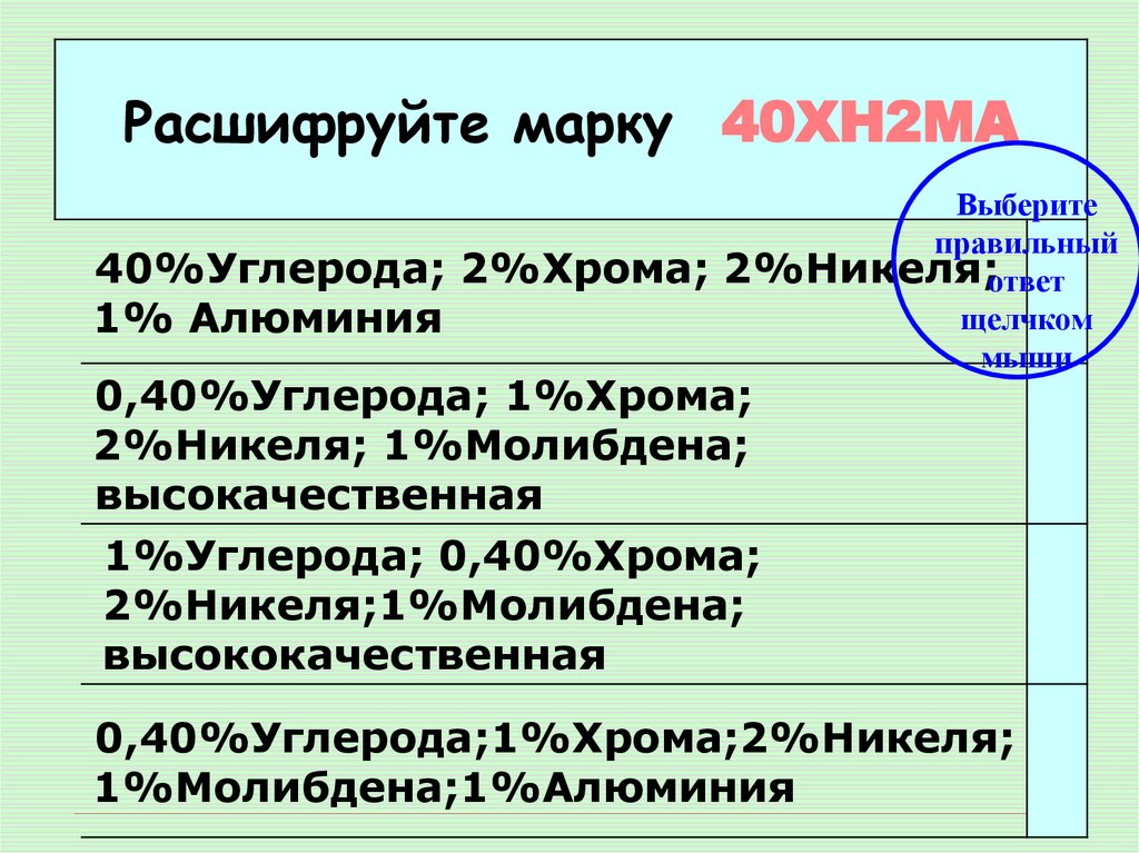 Расшифруйте марку 40ХН2МАВыберите