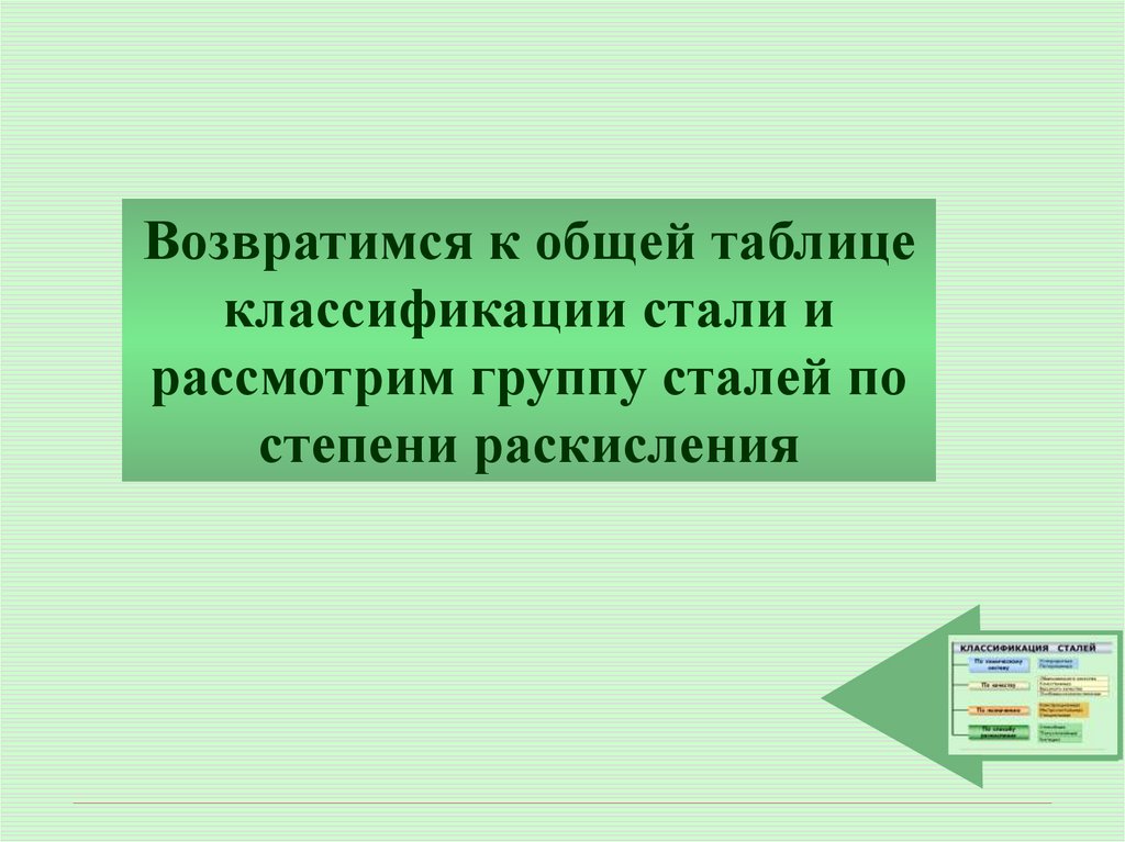 Возвратимся к общей таблицеклассификации стали и
