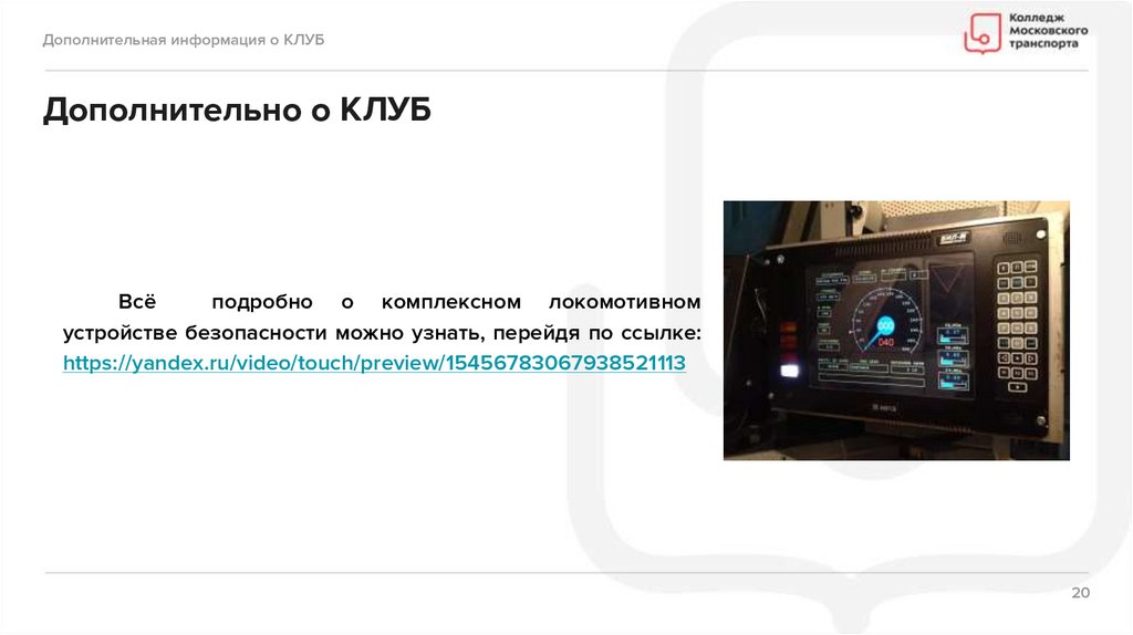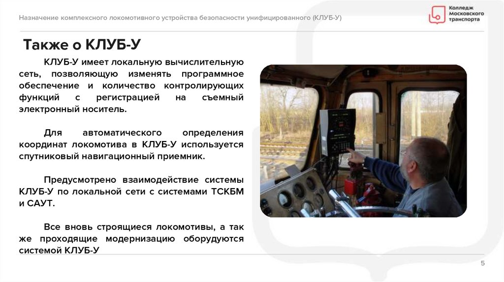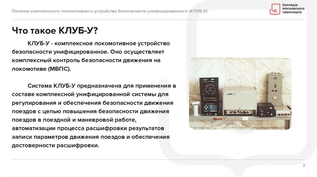 Понятие комплексного локомотивного устройства безопасности унифицированного (КЛУБ-У)Что такое КЛУБ-У?