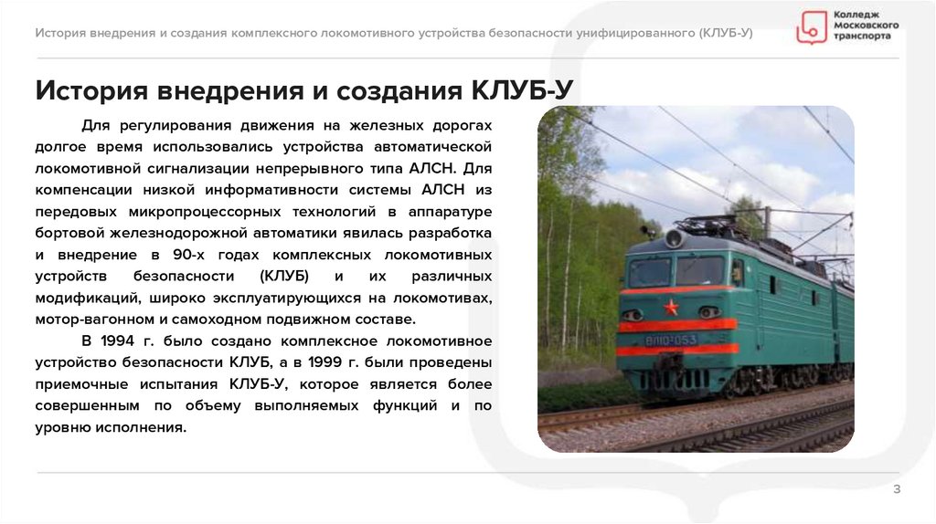 История внедрения и создания комплексного локомотивного устройства безопасности унифицированного (КЛУБ-У)История внедрения и создания КЛУБ-У