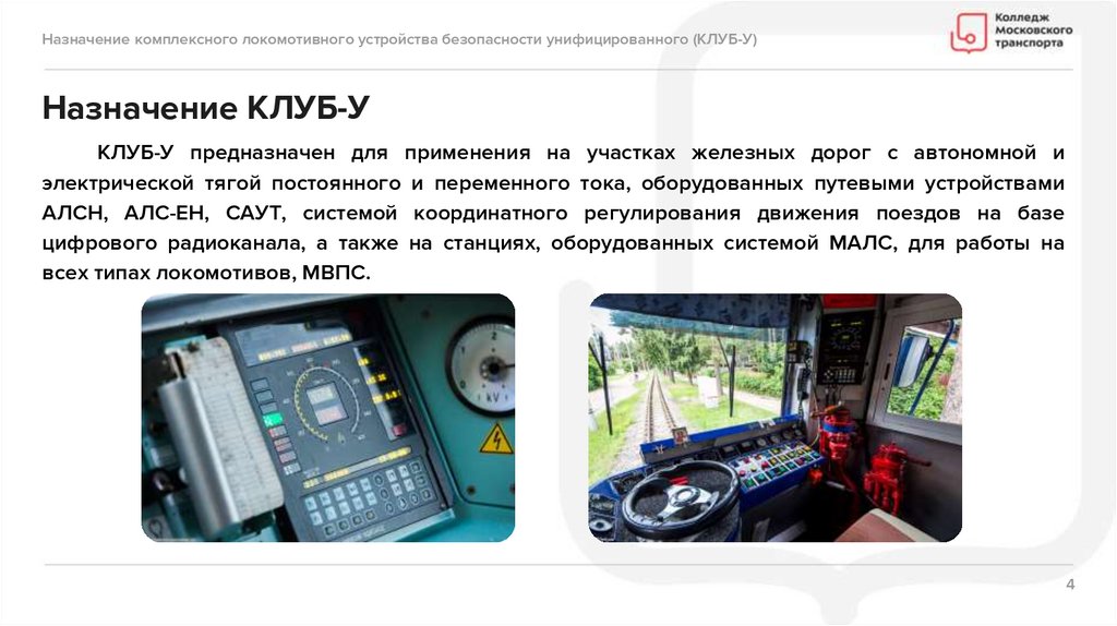 КЛУБ-У предназначен для применения на участках железных дорог с автономной и