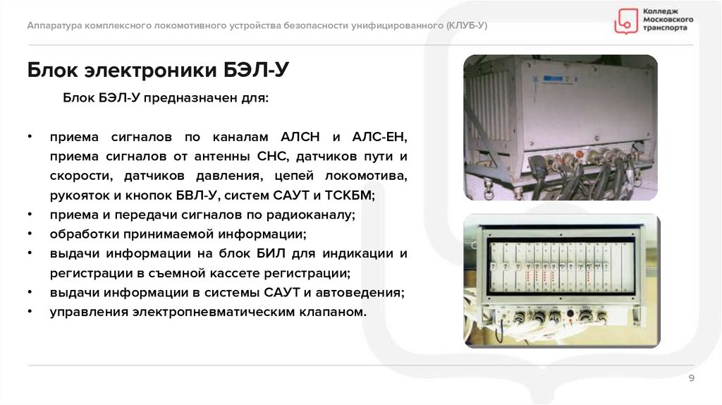 Назначение комплексного локомотивного устройства безопасности унифицированного (КЛУБ-У)Назначение КЛУБ-У