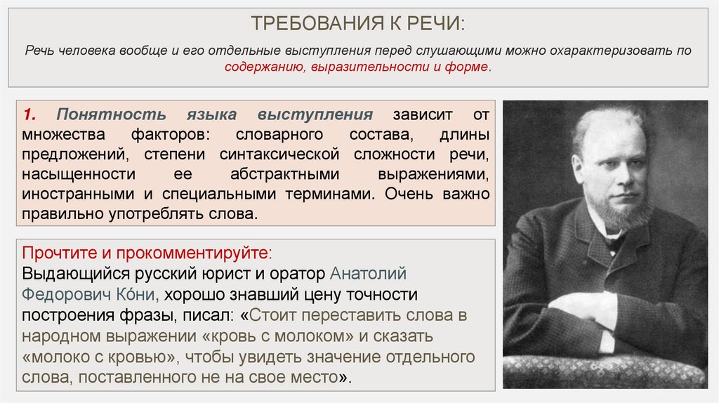 ТРЕБОВАНИЯ К РЕЧИ:Речь человека вообще и его отдельные выступления перед слушающими можно охарактеризовать по