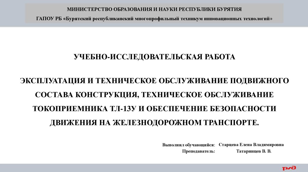 МИНИСТЕРСТВО ОБРАЗОВАНИЯ И НАУКИ РЕСПУБЛИКИ БУРЯТИЯГАПОУ РБ «Бурятский республиканский многопрофильный техникум инновационных технологий»