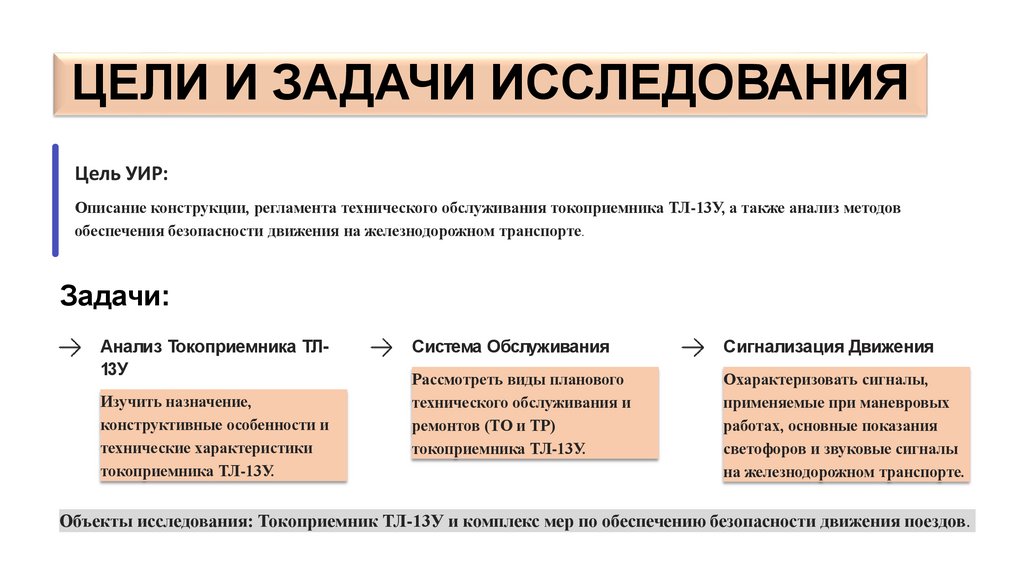 Объекты исследования: Токоприемник ТЛ-13У и комплекс мер по обеспечению безопасности движения поездов.